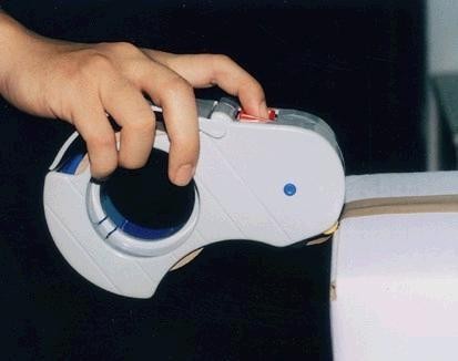 自動膠帶切割機 (封箱包裝用) 自動膠帶切割機 封箱包裝用 (適用2吋 2.5吋 OPP 膠帶) 可放膠帶長度到100碼 1) 將膠帶貼在紙箱上 2) 輕輕往後拉 3) 先轉成90度 再按紅色按鈕即自動切斷膠帶 自動膠帶切割機 封箱包裝用 世貿中心展示價 AL:750 NT$400/pc NT$1,000 (3pcs)